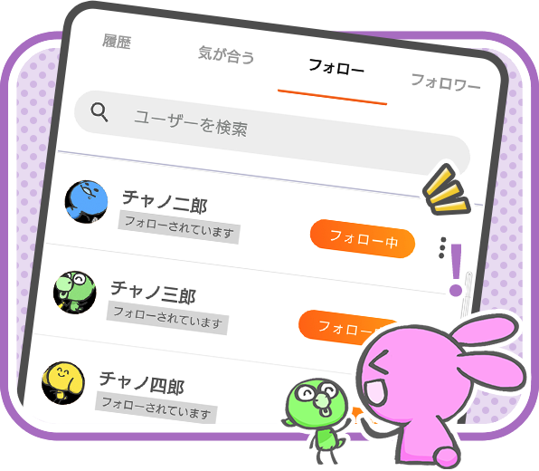 一度チャットした相手をフォローして、リストで管理でき、フォローした相手とは次回チャット時にマッチングしやすくなります。